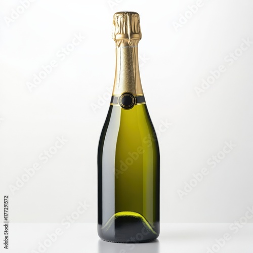bottle, sparkling, wine, gold, foil, alcohol, celebration, champaign, drink, beverage, glasses, liquid, luxury, party, event, occasion, vintage, still, product, closeup, isolated, white background, studio, full, green, sealed, corked