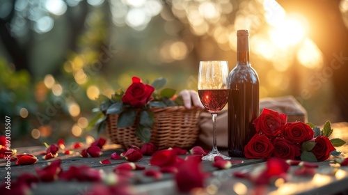 romance, date, valentine, wine, anniversary, wedding, romantic, rose, alcohol, love, gift, couple, bottle, red, glasses, holiday, celebration, flower, drink, beverage, background, beautiful, dinner, table, day