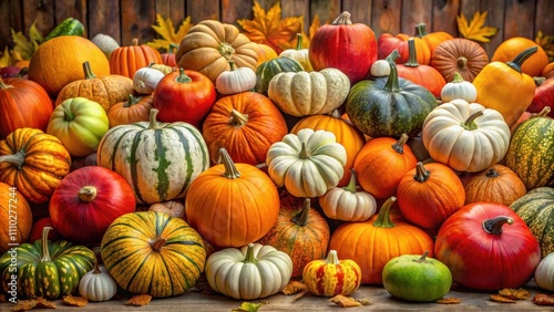 A Bountiful Harvest of Pumpkins, Gourds, and Squash, a Vibrant Tapestry of Autumnal Colors and Shapes