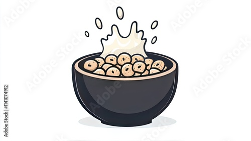 A bowl of cereal with milk splashing, representing a breakfast scene.