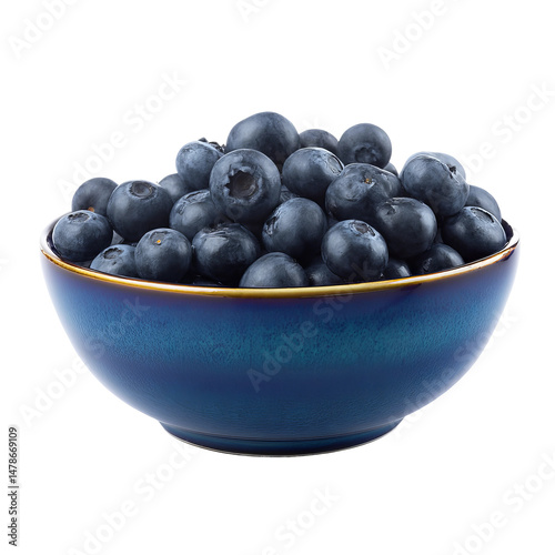 A bowl of fresh blueberries, a vibrant and delicious fruit, is filled to the brim. The bowl's rim is visible, creating a delightful display of nature's sweetness