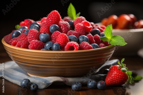 fruit, berry, raspberry, blueberry, strawberry, mint, healthy, snack, bowl, fresh, vibrant, colourful, organic, natural, dessert, nourishment, summer, sweet, juicy, ripe, wholesome, harvest, epicure, cookery, delicious, refreshing, food, diet, vitamin, antioxidant, serve, eat, culinary, picnic, breakfast, brunch, share, treat, display, arrangement, table, rustic, farm, market, seasonal, ingredient, preparation, presentation, enjoyment