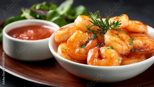 bowl, fresh, shrimp, red, sauce, side, served, light, meal, children, adult, alike, dish, dark, background, highlight, vibrant, colours, mouth-watering, attracted, scene, 1, love, delicious, food, while, children, friendly, dish, both, tasty, health, conscious