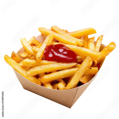 snack, ketchup, tasty, food, sirup, french, fries, container, fast, meal, potato, eatery, cardboard, sauce, serving, bowl, gold, brown, fries, dollop, top, placed