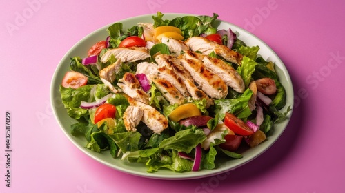 A bowl of hearty chicken stew filled with vibrant vegetables is presented, evoking warmth and comfort. The rich colors and textures make it an inviting dish.