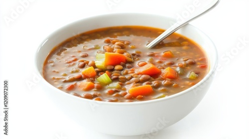 bowl, hearty, lentil, soup, carrot, celery, tomatoes, each, spoonful, filled, alimentary, lentil, rich, vegetable, broth, comforting, warmth, wholesome, goodness, highlighted, isolated, white, background