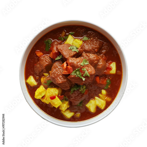A bowl of Spicy beef curry & beef vindaloo isolated on a transparent background by AI generative