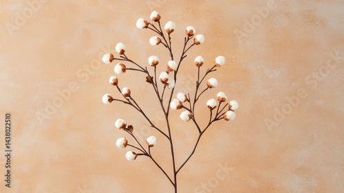 tree branch, cotton, boll, stem, single, delicate, white, orange, brown, light, appealing, arrangement, material, twig, small, round