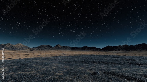 A breathtaking night sky over a rocky lunar landscape filled with stars.