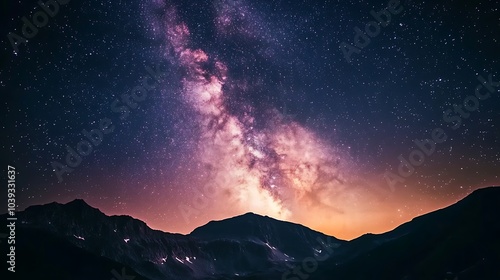 A breathtaking view of a star-filled sky with the Milky Way galaxy prominently displayed, capturing the beauty of celestial bodies, vibrant colors, perfect for a poster background, space for