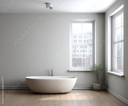 bathroom, interior, modern, white, bathtub, window, city, view, neutral, light, roomy, minimalist, design, clean, simple, elegant, room, contemporary, home, grey, wooden, floor, plant, corner, bright, peaceful, calm, beautiful, colourful, creative, stylish, professional, decorative, vibrant, stunning, amazing, marvellously, fantastic, gorgeous, lovely, charming, attractive, impressive, spectacular, magnificent, excellent, honed, quality