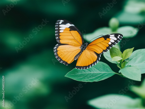 butterfly, orange, nature, green, leaf, beauty, transformation, serene, natural, insect, garden, bright, vibrant, calm, peaceful, eco, wildlife, wing, delicate, elegant, artistic, fresh, symbolic, environment, fauna, pure, scene, tropical, beautiful, harmony, flora, gentle, soft, sunlight, life, inspiration, detail, organic, ecosystem, tranquil, copy space
