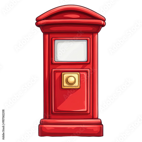 A bright red vintage mailbox stands prominently with a golden slot isolated on transparency PNG background, perfect for themes of postal services, nostalgia, and communication