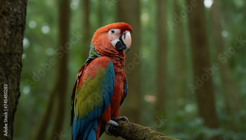 ara, parrot, bird, red, blue, yellow, feather, beak, tree branch, tropical, jungle, forest, nature, fauna, plumage, exotic, brightness, colours, wing, tail, green, background, blur, sharpness, contrast, grace, pose, sitting, observation, wildlife, beauty, photo, composition, detail, shades, eye, crest, paw, claw, feathered, graceful, proud, majestic, south america, macaw, animal, feather, colourful, zoo