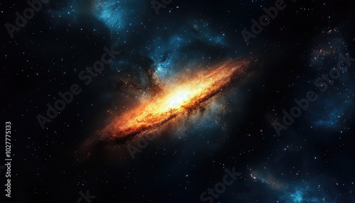 A brilliant spiral galaxy glows vibrantly amidst the dark expanse of space, radiating energy and light against the backdrop of the cosmos, captivating the viewer.