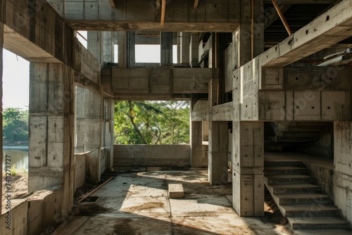 abandoned, tree, building, beam, window, stair, indoor, exploration, ground, decay, concrete, architecture, structure, staircase, urban, interior, exterior, decayed, old, urban decay