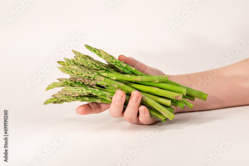 asparagus, vegetable, food, fresh, green, healthy, isolated, bunch, white, raw, organic, diet, ingredient, vegetarian, nourishment, vegetable, natural, cooking, hand, epicure, bundle, health, uncooked, nature, holding