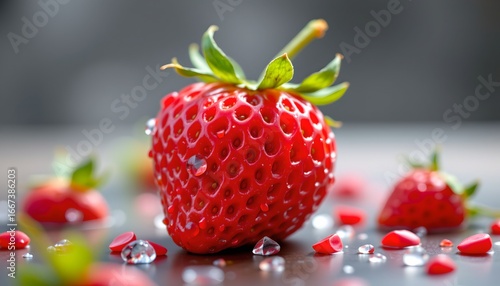 strawberry, fruit, berry, fresh, ripe, red, vibrant, colourful, juicy, nature, water, droplet, elegance, arrangement, display, appetising, healthy, organic, harvest, garden, cookery, dessert, decoration, photo, landscape, closeup, delicious, nourishing, spring, summer, seasonal, picnic, snack, sweet, tart, rustic, wholesome, botanical, epicure, food, freshness, vitamin, indulgence, beauty, artistry, texture, natural, playful, enticing