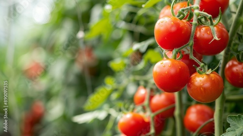 red, vegetable, agricultural, organic, food, green, plant, ripe, greenhouse, fresh, tomatoes, farming, vitamin, nature, growth, healthy, vegetarian, harvest, gardening, leaf, grow, tasty, bush, bunch, summer, juicy, cultivated, freshness, crop, raw, fruit, tree branch, closeup, diet, cherry, field, background, salad, ingredient, vine, round, health, produce, autumn, ripening, stem, colours, business, nourishment