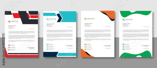 a bundle of 4 minimalist corporate and modern business letterhead template, professional & creative letterhead template design with geometric shape, abstract design and vector template design