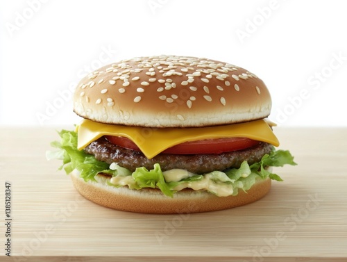 burger, sesame, seed, bun, lettuce, tomatoes, cheese, simplicity, classic, fast, food, advertising, stacked, perfectly, melted, crisp
