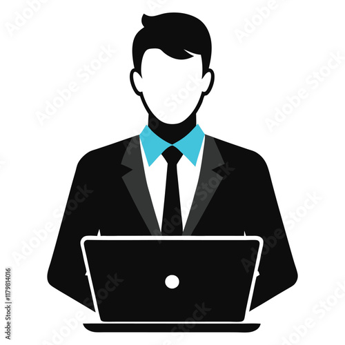 a businessman working on a laptop silhouette
