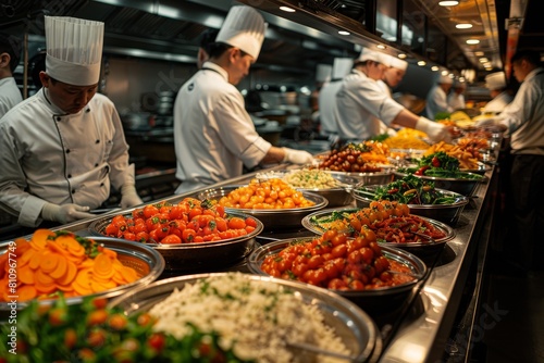 professional, kitchen, chef, dish, variety, service, teamwork, culinary, cookery, preparation, epicure, tied-up, cooking, gastronomy, expertise, eatery, coordination, uniform, concentration, dexterity, culinary arts, gastronomic, kitchen utensile, efficiency, nourishment, hospitality, stove, cutting, chopping, industry, salad, tomatoes, rice, vegetable, banquet, meticulous