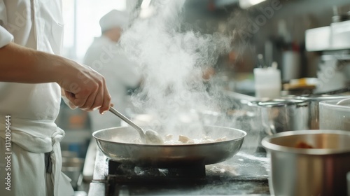 chef, cooking, kitchen, tied-up, eatery, pan, steaming, culinary, action, hot, food, preparation, professional, heat, cookware, ingredient, dynamic, cook