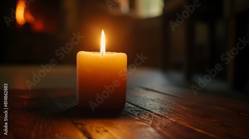 A candle flame flickering softly in a dim room, creating a warm and soothing ambiance