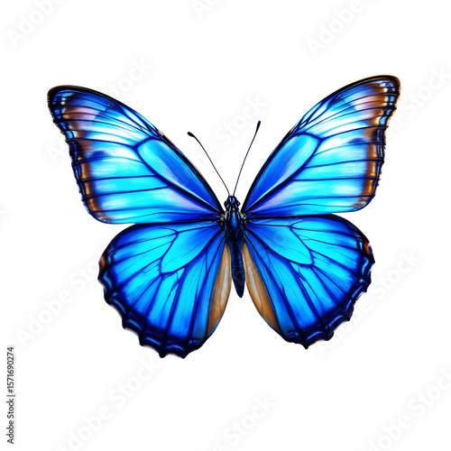 A captivating blue butterfly, wings fully extended, is displayed against a clean transparent background, highlighting its exquisite form and color