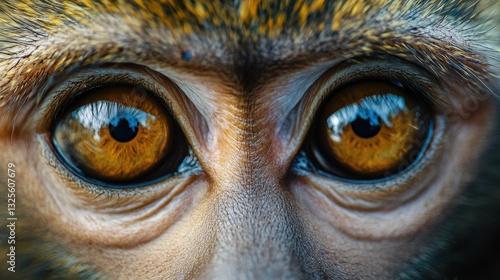 a captivating close-up shot of a monkey's expressive eyes, conveying intelligence and curiosity