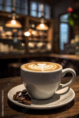 A Captivating Coffee Moment with Heartwarming Latte Art in a Rustic Café