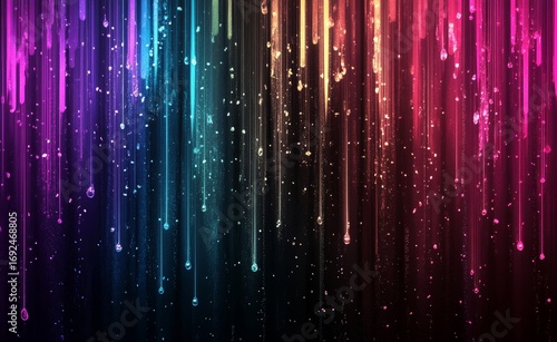 A captivating digital spectacle of multicolored lights and vertical lines, evoking the spirit of technology, urban environments, and innovative art in a dynamic city