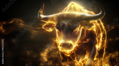 A captivating glowing bull illustration showcasing strength and energy, perfect for symbolizing power and determination.