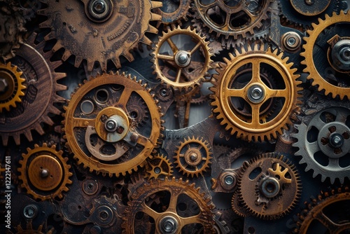 A captivating tapestry of interlocking gears showcases intricate mechanical design and relentless motion, embodying the essence of engineering ingenuity and artistry