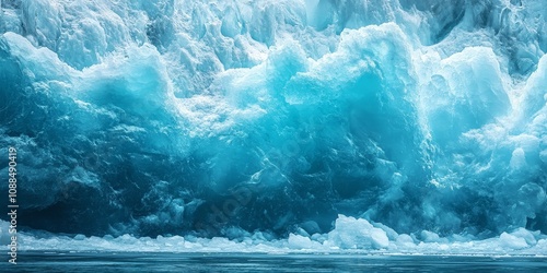 A captivating view looking up at an ice wall, showcasing the impressive features of a glacier during the summer season. This ice wall highlights the natural beauty and majesty of glacial formations.