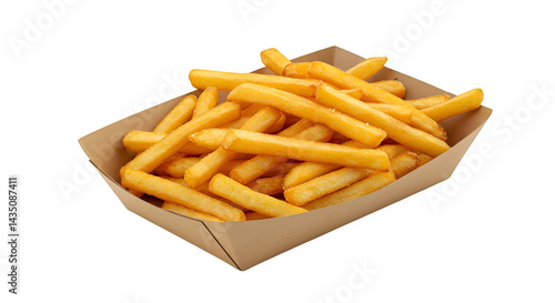 A cardboard tray filled with a generous portion of golden french fries png, jpeg, jpg, transparent background, white background. isolated on transparent background