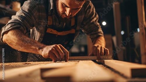 A carpenter carefully measuring and cutting wood, highlighting the expertise required in skilled labor
