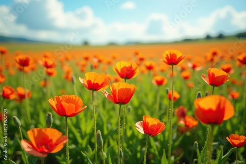 A carpet of colorful poppies in a meadow field, Field, Orange, Yellow