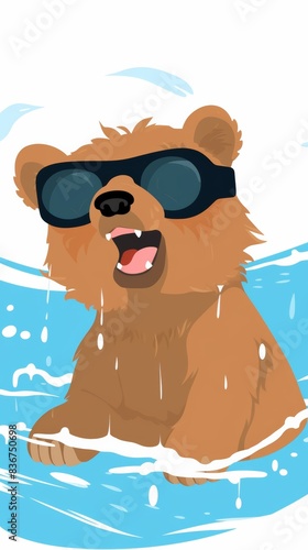 cartoon, bear, swim, pool, wear, black, animal, water, summer, furry, funny, omnivore, mountain, river, mammal, playful, happy, leisure, predator, wildlife, humor, refresh, nature, diving, forest, carnivore, swimwear, ocean