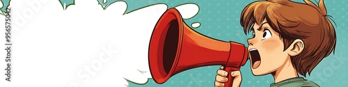 A cartoon boy is holding a megaphone and yelling. The image is meant to convey the idea of speaking up and making your voice heard