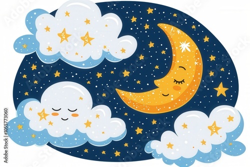 cartoon, drawing, moon, cloud, star, background, smiling, sleep, night, peaceful, calming, blue, sky, design, paper, dark, space, decoration, nature, illustration, card, art, vector, abstract, wallpaper, light, graphic, shape, landscape, moonlight, astronomy, evening, crescent, element, bright, universe, fantasy, style, craft, cute, weather, dream, creative, yellow, object, baby, midnight, cloudy