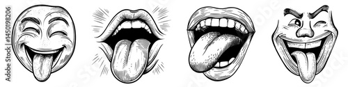cartoon, face, sticking, tongue, closed, eye, vector, tease, sour, taste, expression, facial, funny, naughty, disgusting, emotion, character, creature, graphic, white, contrary, emoticon, design, lick, feeling, repugnant, pink, background, licking, illustration, isolated, obnoxious, badger, nasty, element