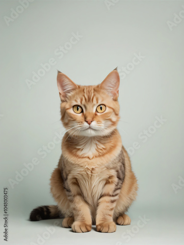 A cat sits against a plain background