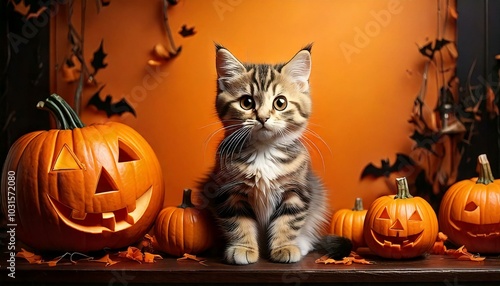 cat, halloween, decoration, holiday, skittish, pet, lantern, pumpkin, animal, black, celebration, cute, fall, orange, autumn, felino, scarey, festive, jack, playful, costume, hat, kitten, october, sorcerer, face, decor, jack-o-lantern, background, atmosphere, bat, conceptual, cosy, dog, evil, fur, greeting, horror, image, interaction, look, magical, mammal, mood, party, postcard, seasonal, smile, theme