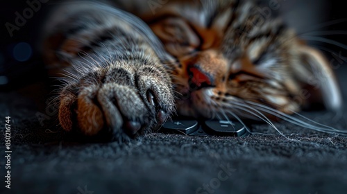 A Catýs Ashen Paw Rests On A Computer Mouse, Blending Work With Companionship