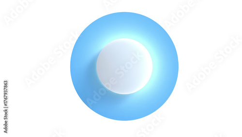 A central white sphere surrounded by a diffused blue glow against a stark black background, top-down perspective