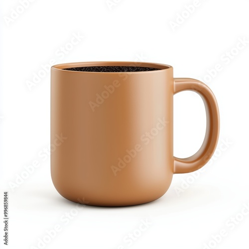 A ceramic coffee cup with a curved handle, filled with black coffee, isolated on white
