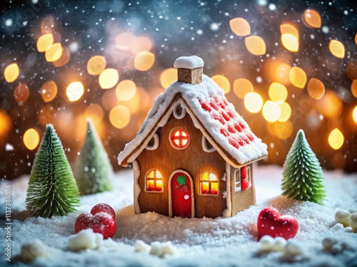 gingerbread, house, snow, winter, bokeh, festive, holiday, field, red, door, magical, light, scene, sparkle, atmosphere, decoration, cosy, season, sweet, treat, christmas, landscape, childhood, imagination, tradition, edible, dessert, celebration, whimsical, warmth, winterly, architecture, charme, fantasy, joy, seasonal, happiness, snowflake, environment, night