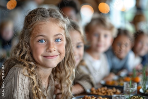 girl, smiling, friends, conversation, lunch, children, table, dining, engaging, happy, portrait, school, youth, meal, togetherness, community, cheerful, camaraderie, peer, nourishment, gathering, innocence, healthy, candid, well-being, eating, lifestyle, sharing, joy, mealtime, young, positivity, friendly, organic, health, environment, companion, social, collective, bliss, vibrant, happiness